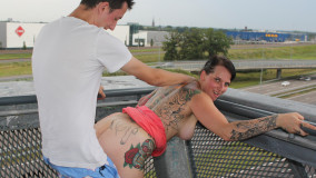 Next to the A16 motorway there has been a work of art called the lightning bolt for a while now. You can climb it and then you have a fantastic view over the wide surroundings of Breda! But it's also pretty quiet there, so with a bit of summer weather you can also do other things there. And let's just have Evy, as crazy and horny as a platoon of commandos together, who is up to the challenge. She met up with Jaymie