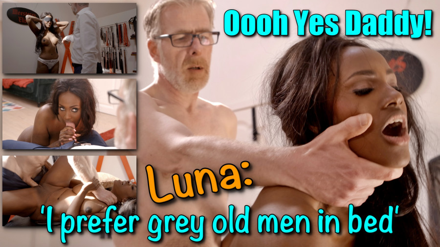 You don't hear that often, that a beautiful woman of 30 falls for gray-haired old men. Luna gets really horny about that. Even on the street, she doesn't get hot or cold from handsome young guys who look at her seductively. No, she finds it much hornier to deal with a dominant gray boss who could have been her daddy. We invited John to get into the game with her. Gray, dominant and fond of naughty girls. He clearly shows who's boss here. And Luna, she cums thunderously. This is what she wants. Delicious!