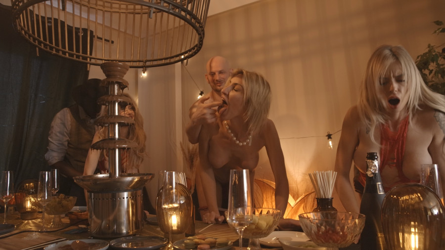 So right before Christmas, our hot team was at it again! Everyone came beautifully dressed with classy red lingerie underneath. The chocolate fountain was ready and everyone feasted on sweet treats. The candles were burning on the table and the atmosphere was right there! No long conversations, but just making out with each other at the table. Anouk, Mini, Sofie and Lotte made it a crazy fuck party. Here is part 1. Merry Christmas!