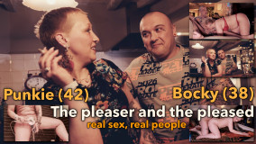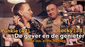 Een warmer en liefdevoller stel dan Punkie (42) en Bocky (38) moeten we nog tegenkomen. We zijn bij hen op bezoek in hun sfeervolle huis waar we ons gelijk thuisvoelen. Dit getrouwde stelletje heeft elkaar door moeilijke tijden heen gesleurd en daarmee kwam het besef dat ze voor elkaar bedoeld zijn. Bocky heeft al heel lang de droom om eens een porno-opname te doen en vandaag komt die wens uit, samen met zijn geliefde. Punkie is de 'gever'. Zij geniet als Bocky zich lekker voelt. Hij is iemand die vooral geniet. Samen hebben ze het heerlijk en hun sex is ontspannen en liefdevol. Klaarkomen doet Punkie het liefst onder de douche, met een grote dildo in haar kutje en de douchekop tegen haar klit. Prachtig! Punkie (42) and Bocky (38). She is the giver, he the enjoyer We have yet to encounter a warmer and more loving couple than Punkie (42) and Bocky (38). We are visiting them in their attractive house where we immediately feel at home. This married couple has dragged each other through difficult times and with that came the realization that they are meant for each other. Bocky has had the dream of doing a porn recording for a long time and today that wish comes true, together with his lover. Punkie is the 'giver'. She enjoys when Bocky feels good. He is someone who especially enjoys. Pure reality, beautiful to see ..