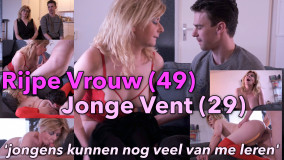 They met in an erotic sauna, where Cindy (49) immediately grabbed his cock. And now they have been in a steady relationship for some time. Despite their age difference, they have blissful sex and they would like to show it to you. She with her load of experience, and he with his impetuous youthfulness. A great combo! At Kim Holland the amateur gets all the space to show real sex. According to Cindy, young guys can learn a lot from her.