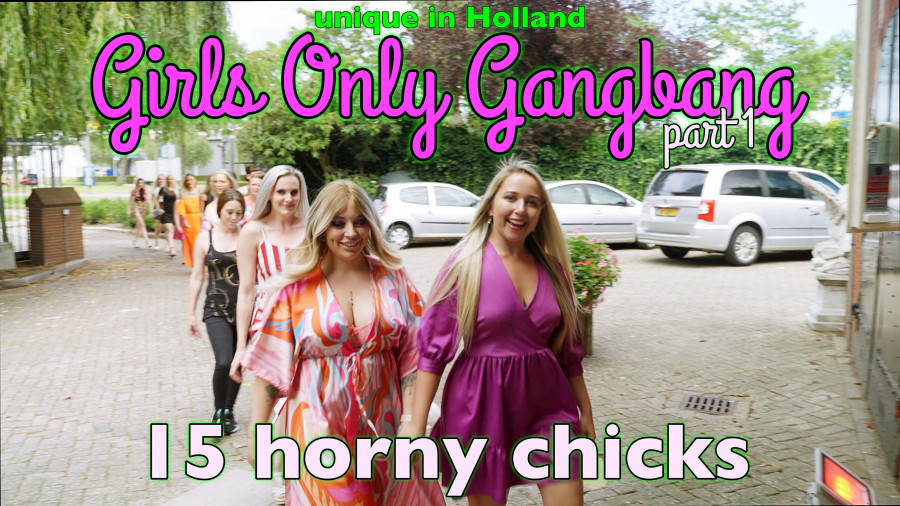 This has never been seen in the Netherlands before, a Girls Only Gangbang with 15 horny Dutch and Flemish girls! A beautiful sunny day here in Dordrecht. We are at Villa Weizigt and have the big garden all to ourselves. And look what a line-up we can present! Something for everyone, from beautiful poppies to MILFS and nice full ladies. Today part 1 where things are already getting hot, up to squirting. This is unique and this 3-part series should not be missed!